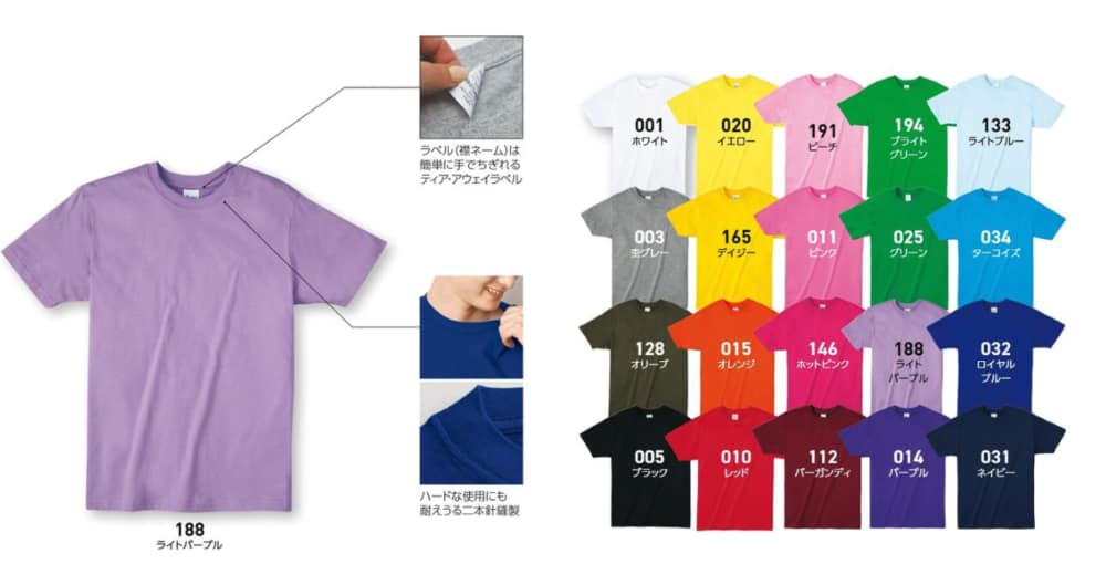 This 4oz shirt is the thinnest and least expensive shirt we offer. It’s perfect for the event promotional freebies or for the person on a budget. Thin doesn’t mean cheap low quality. This 100% cotton t-shirt will last many years and is a great garment for those hot summer months. Screen printing, DTG (Direct to Garment) digital inkjet printing and vinyl transfer prints will look good printed on the front, back, side and sleeves. Bulk discounts for orders over 1000 are possible. Order today and receive your custom printed shirts within 10~12 business days. T-shirt Printing in Japan.